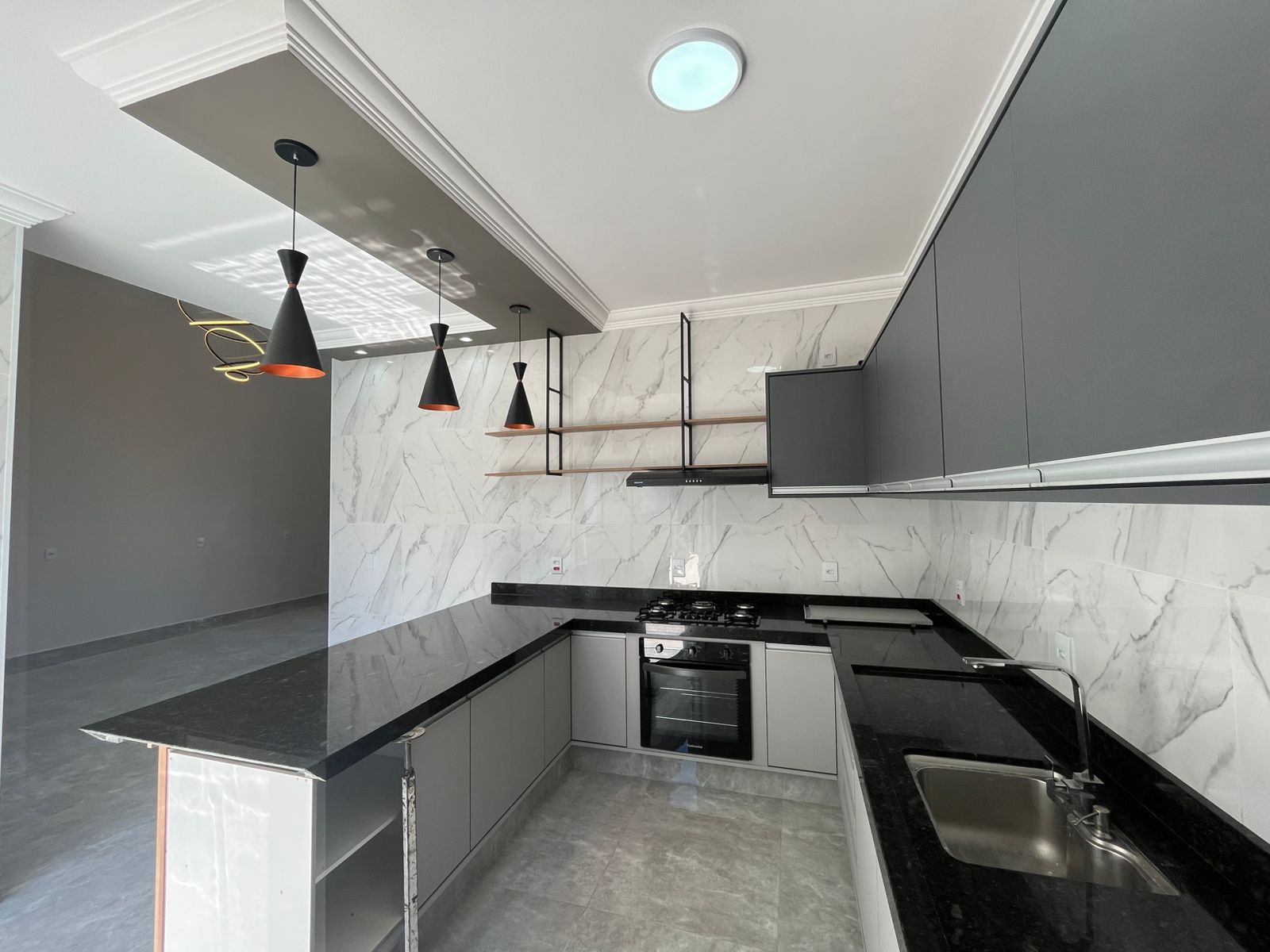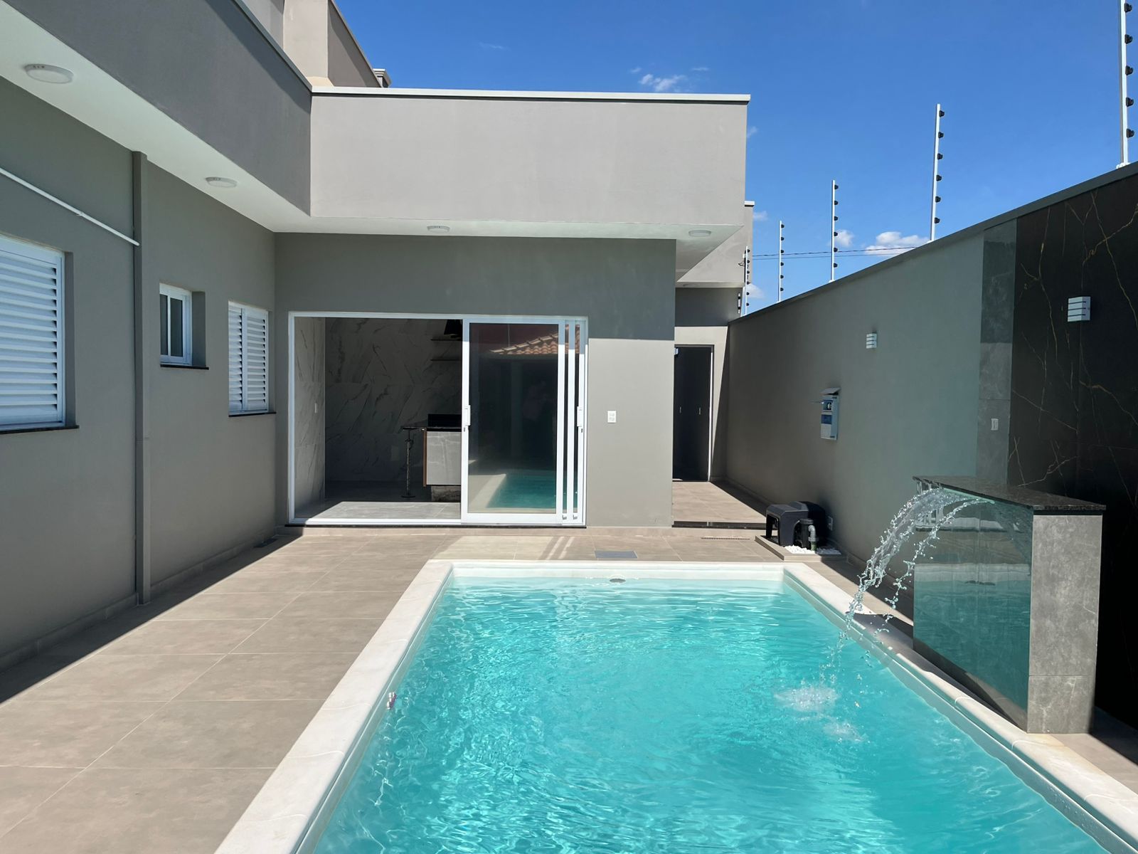 3 dormitórios sendo uma suíte, sala 2 ambientes, cozinha, wc social, área de serviço, linda area gourmet com piscina.