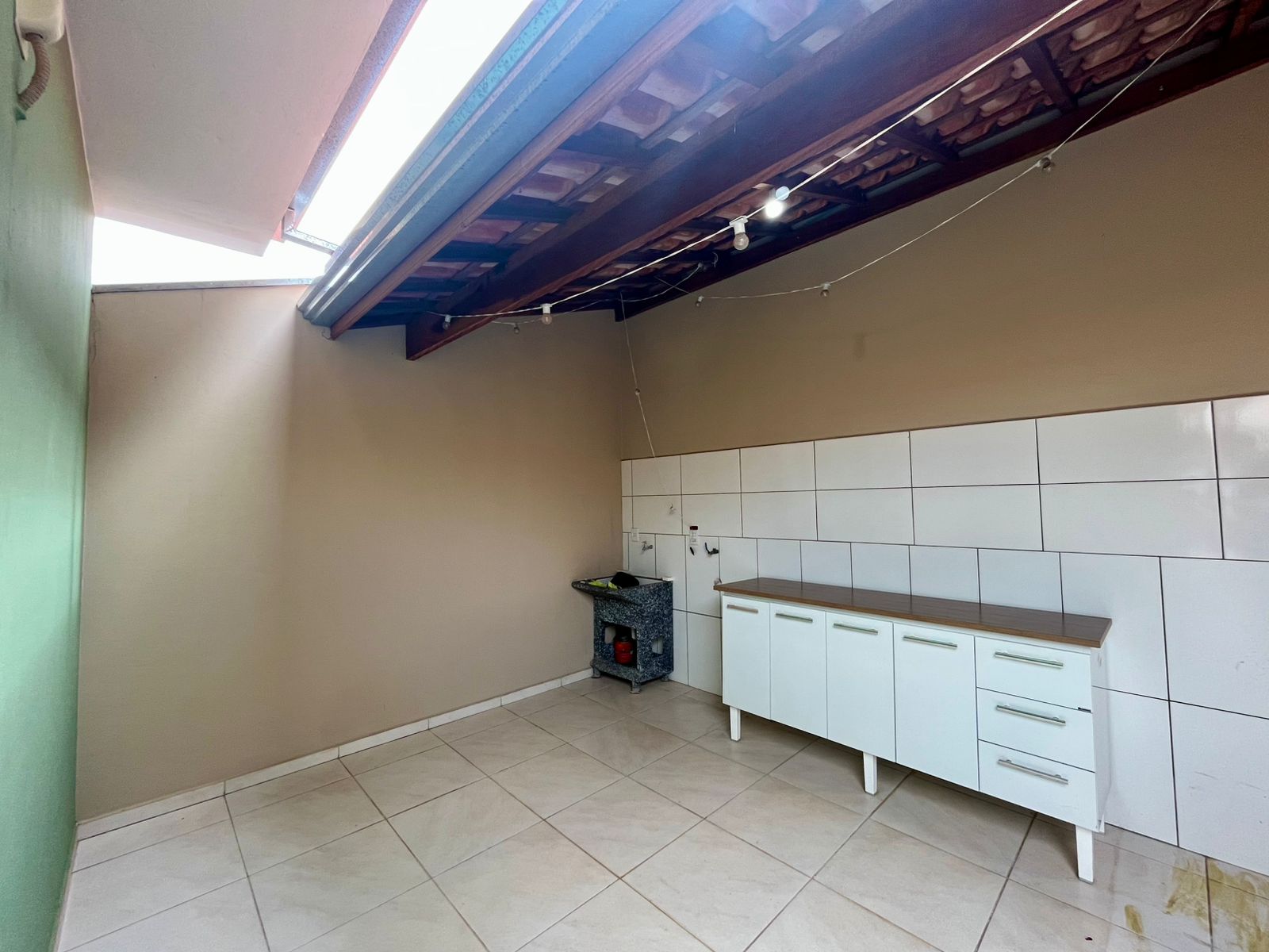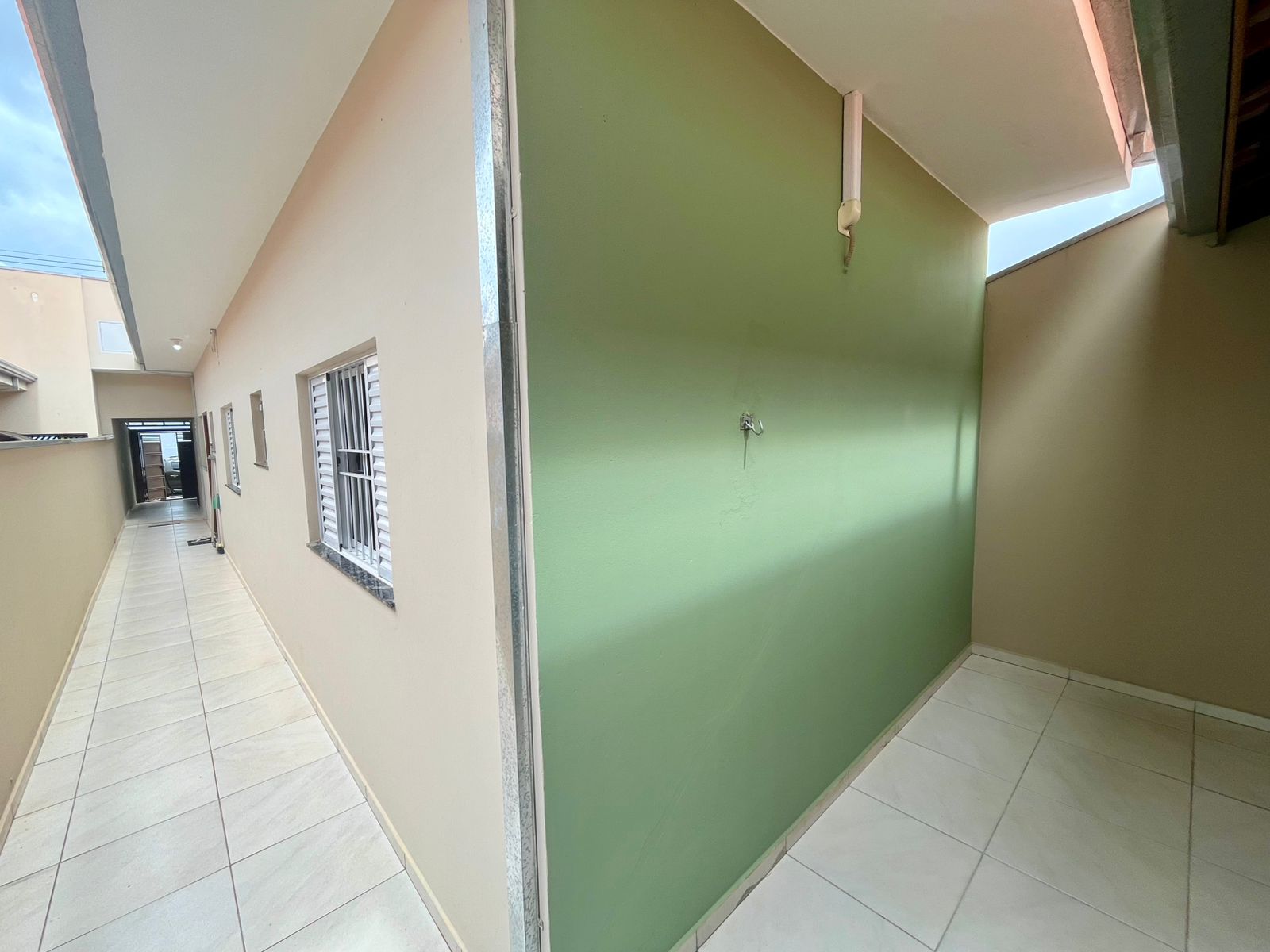2 dormitórios sendo uma suíte, sala, cozinha com armários planejados, wc social, área de serviço, quintal e garagem.